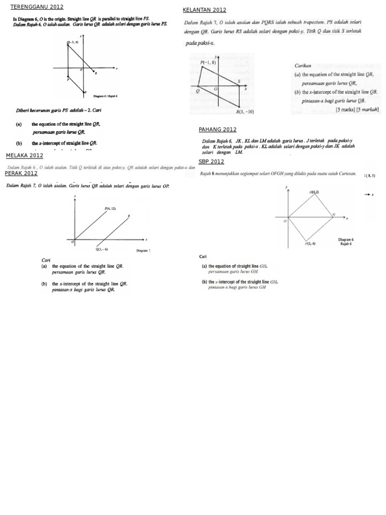 A Nyatakan Persamaan Garis Lurus Qr B Cari Persamaan Garis Lurus Rs Dan Nyatakan Pintasan Y Nya Pdf